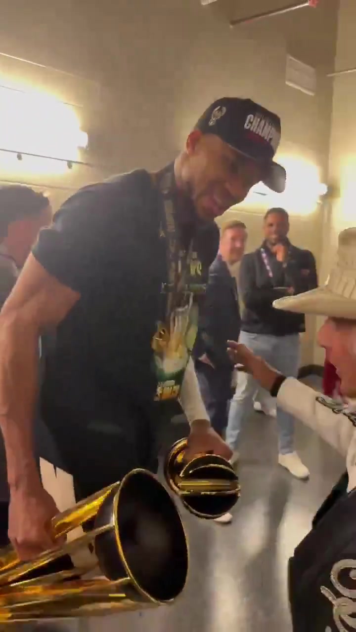 梦回21年!字母一手冠军奖杯一手MVP奖杯走回更衣室🏆🏆