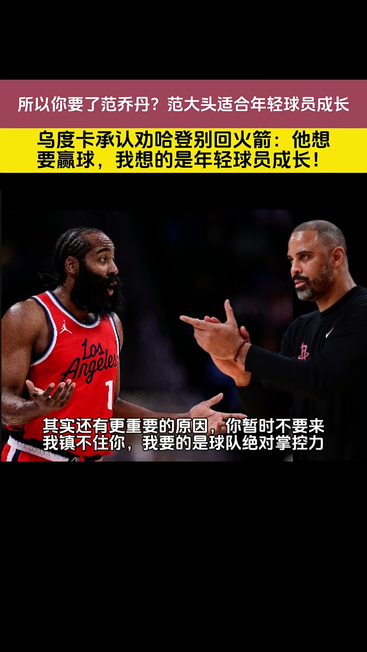 >乌度卡承认劝哈登别回火箭:他想要赢球,我想的是年轻球员成长!