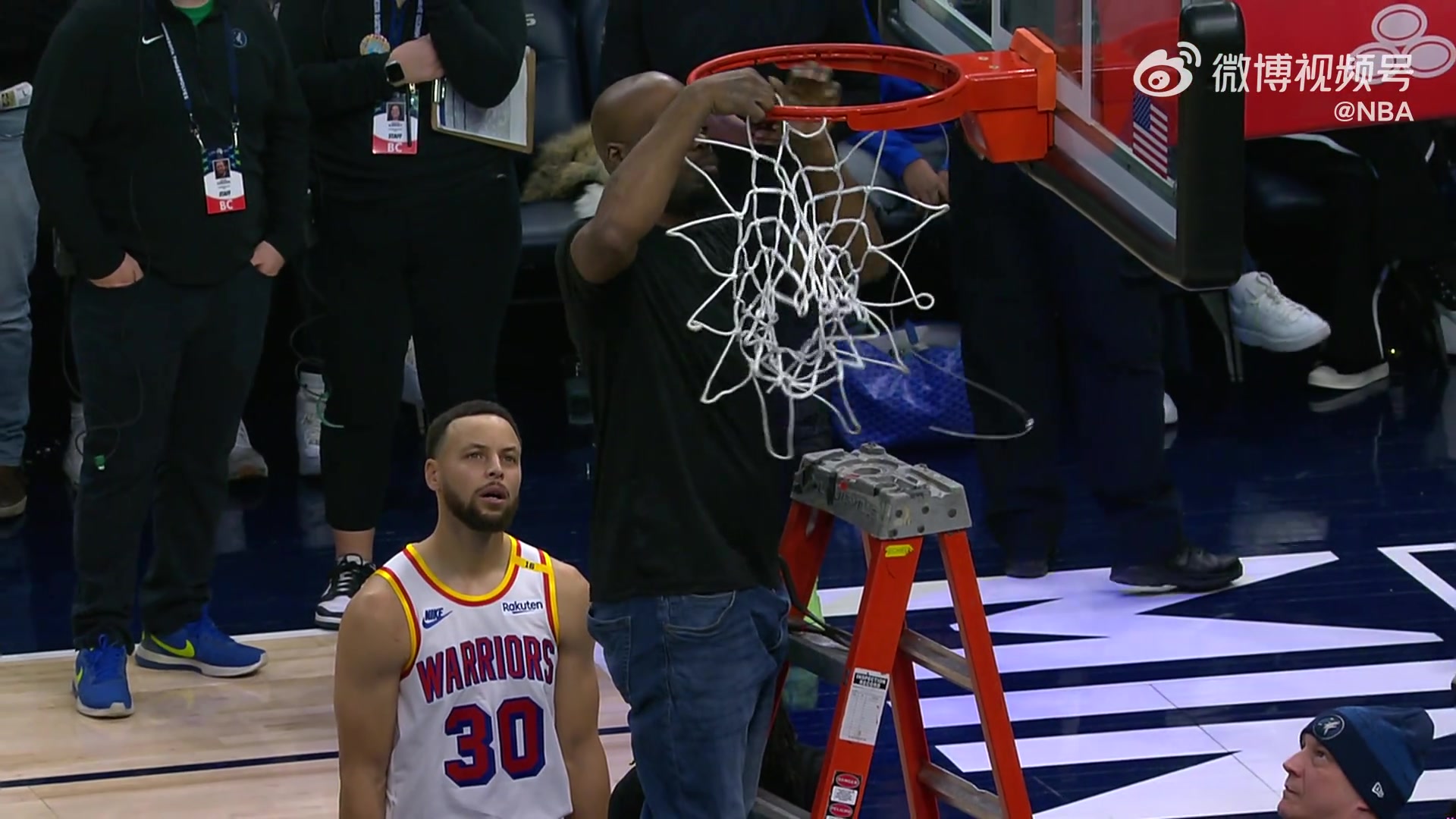 下次让咱库师傅上🤣光头老哥修篮网,库里一脸认真地在旁边学习