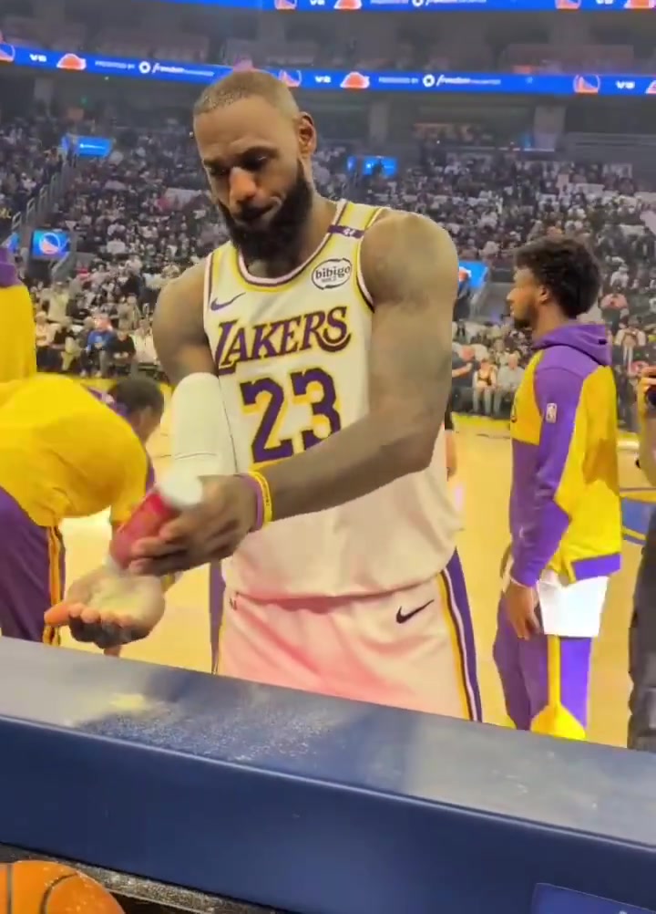 >注意点🤣詹姆斯沉浸式撒镁粉,撒了里夫斯和布朗尼一脸