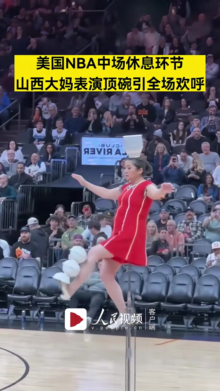 >🤩文化输出!NBA中场休息环节,山西大妈表演顶碗引全场欢呼!