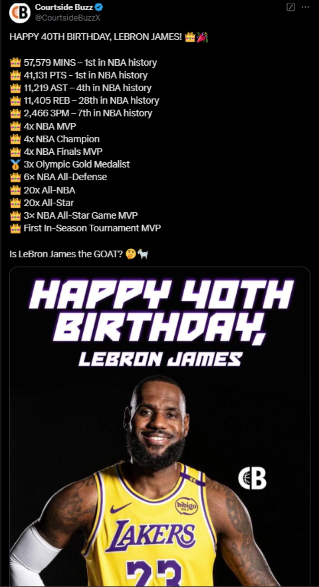 >40岁生日!美媒罗列詹姆炸裂荣誉表,并发问:他是GOAT吗?