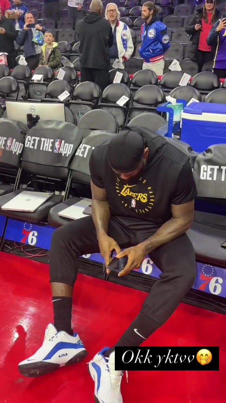 老詹在赛前抓紧时间蹭一下WiFi🤣