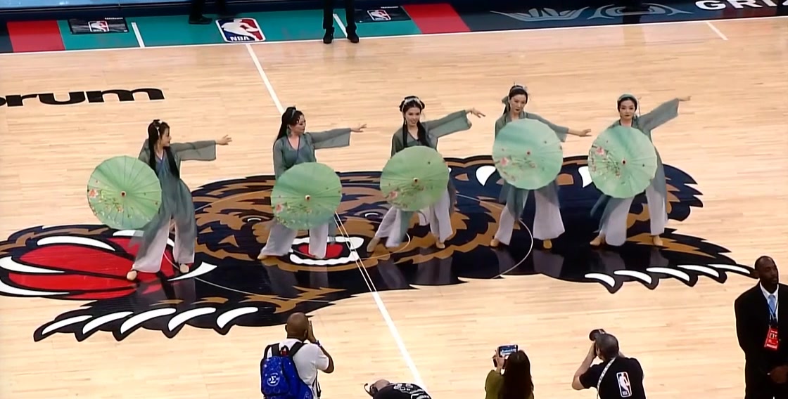 >致敬中国年!灰熊主场放《青城山下白素贞》旋律 啦啦队跳举伞舞