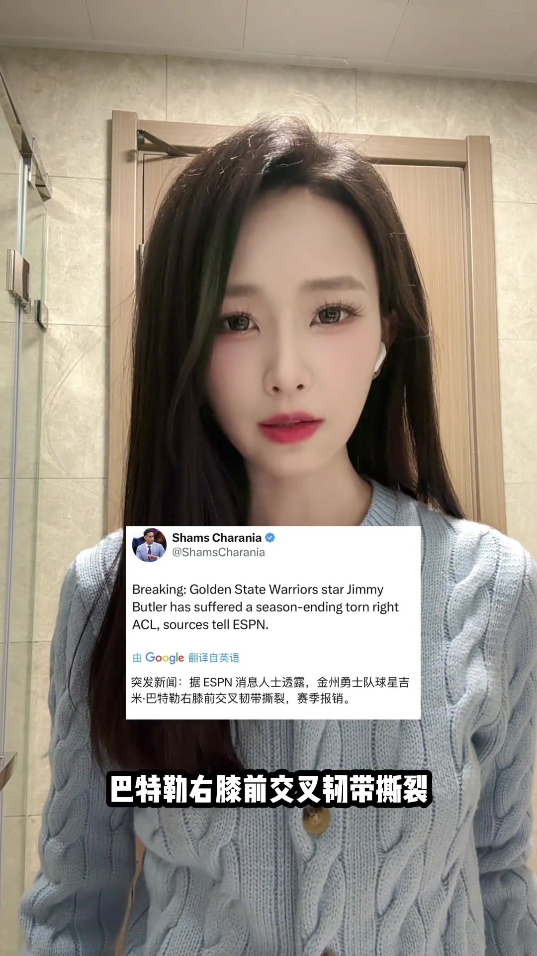 女主播辰辰:巴特勒右膝前交叉韧带撕裂 最不希望的事情发生了