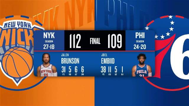 [腾讯全场集锦]🏀76人不敌尼克斯 恩比德空砍38+11 乔治10中3 布伦森31+6