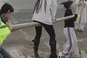 女子坐在路边玩手机,没想到被朋友恶搞了,网友:坐得还挺稳的
