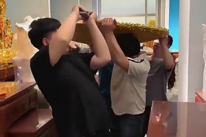 铜雕的装饰品,看师傅们抬起来的表情,就知道它有多么的重!