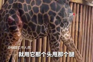 动物园长颈鹿狂甩脖子撞身体,工作人员: 它有肾结石