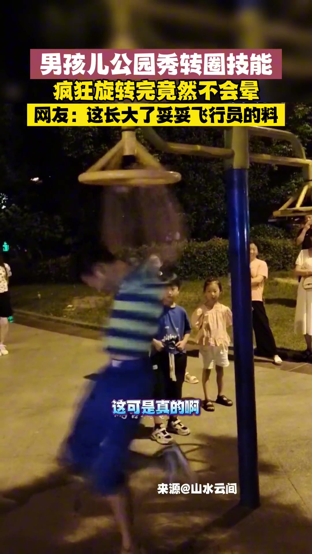 男孩儿公园秀“无影”转圈技能,转完竟然不晕!