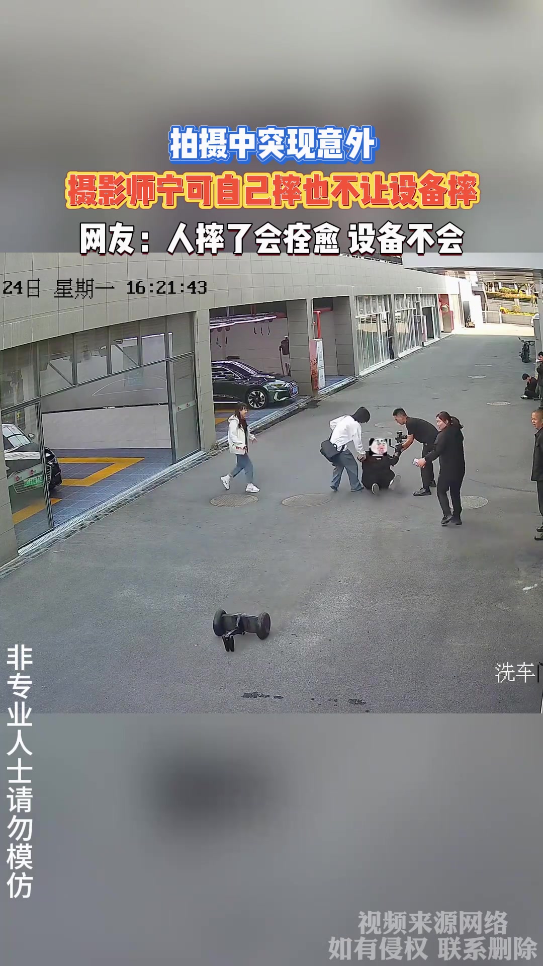 拍摄中突现意外,摄影师宁可自己摔也不让设备摔
