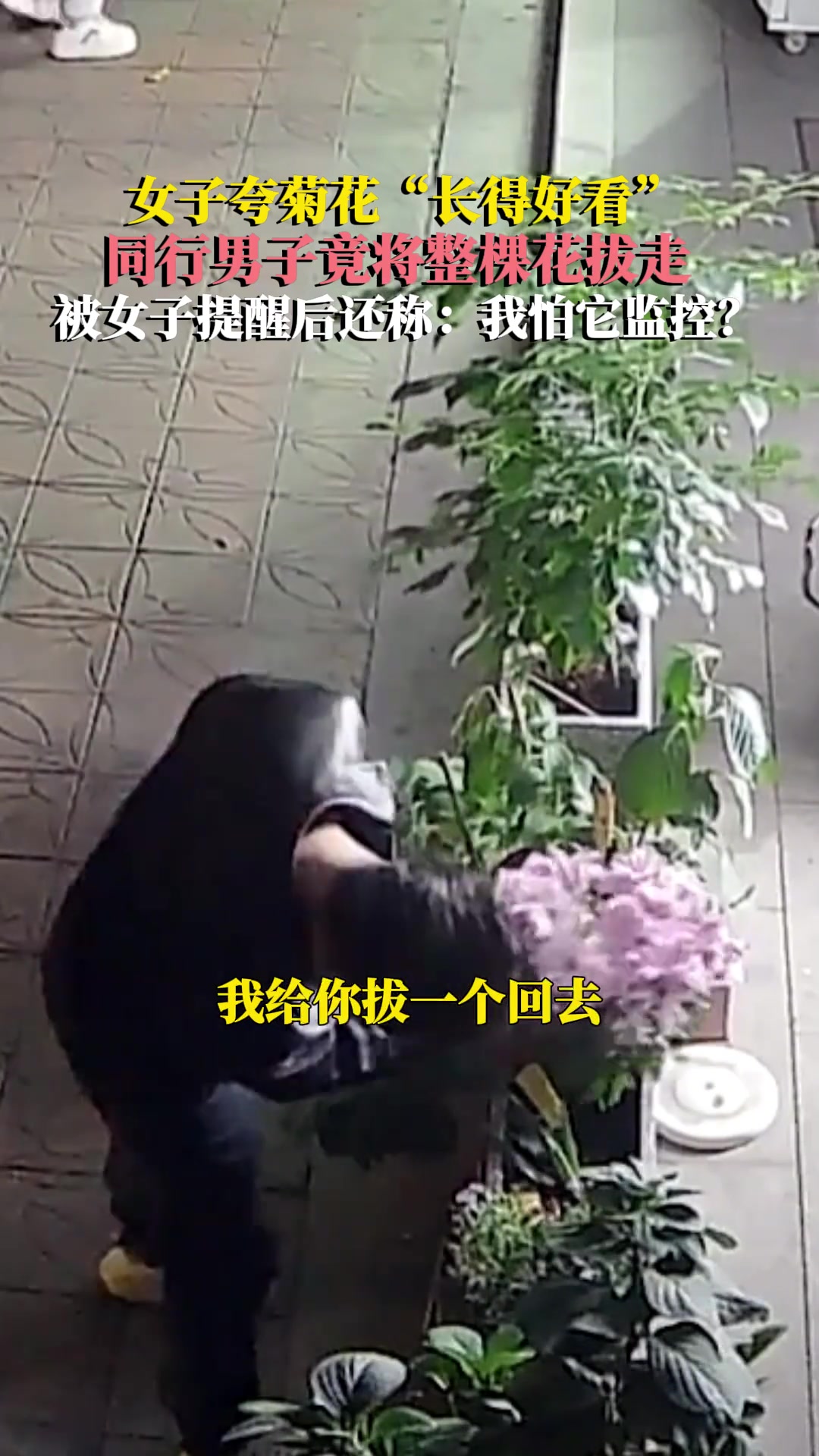 女子夸菊花“长得好看”,同行男子竟将整棵花拔走