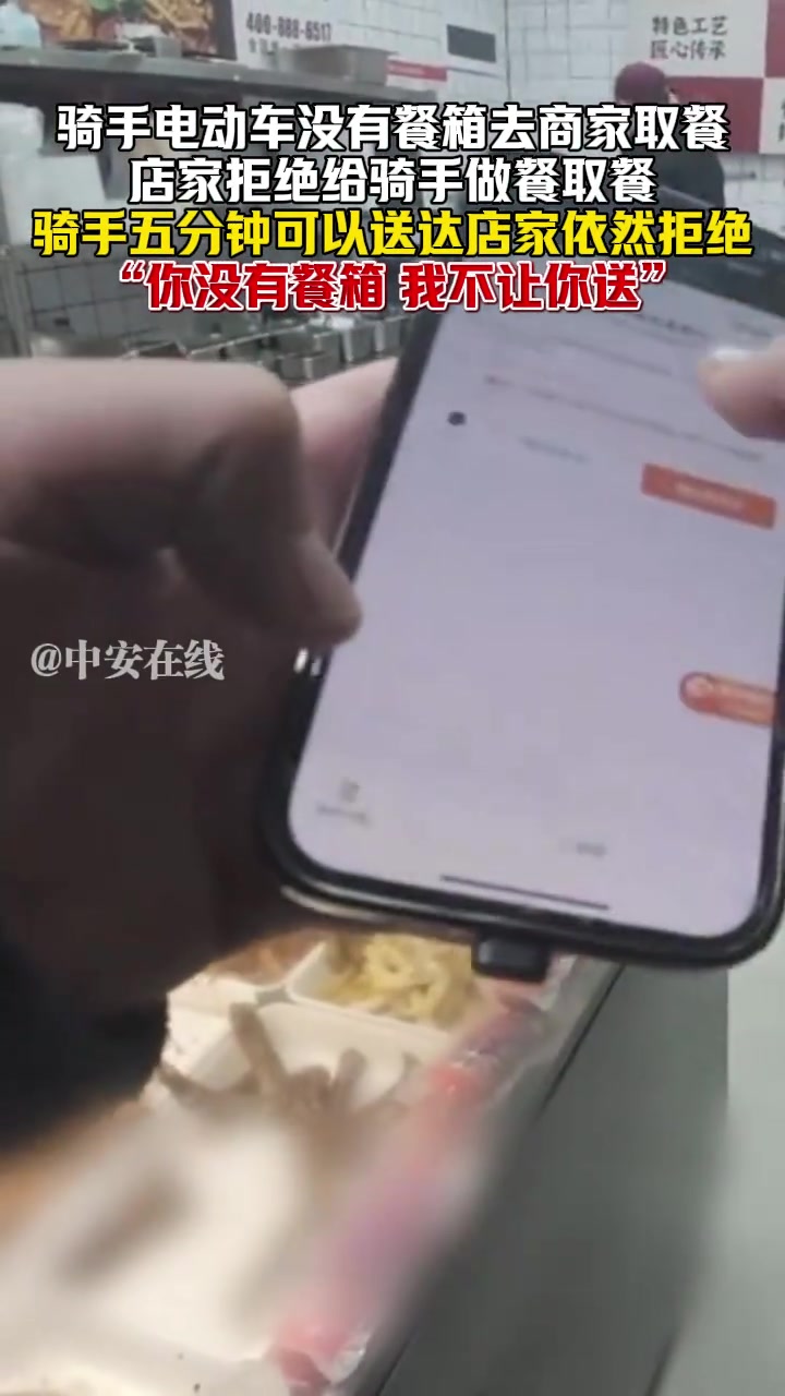 >骑手电动车没有餐箱去商家取餐,店家拒绝给骑手做餐取餐