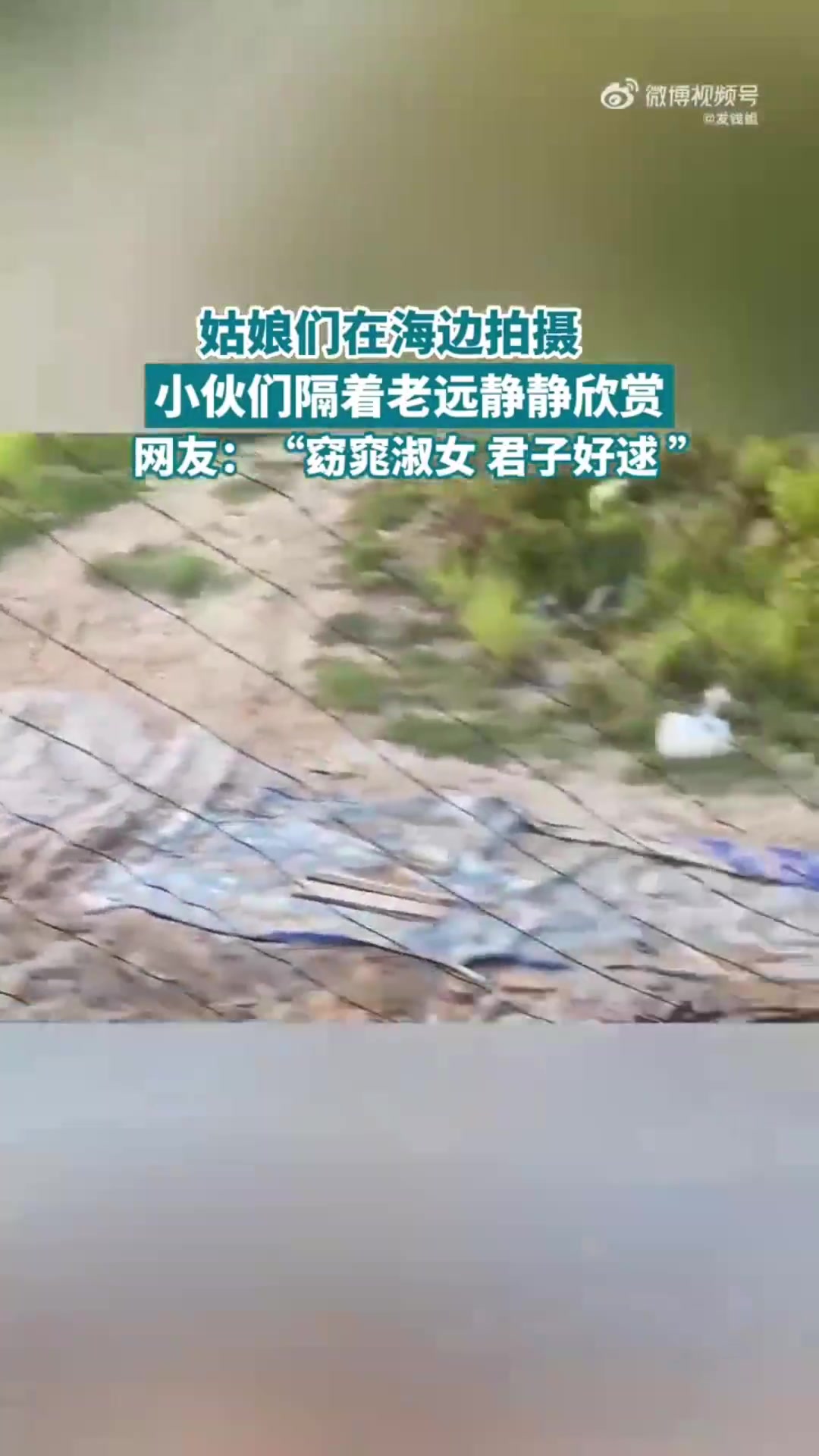 姑娘们在海边拍摄,小伙们隔着老远静静欣赏!!!