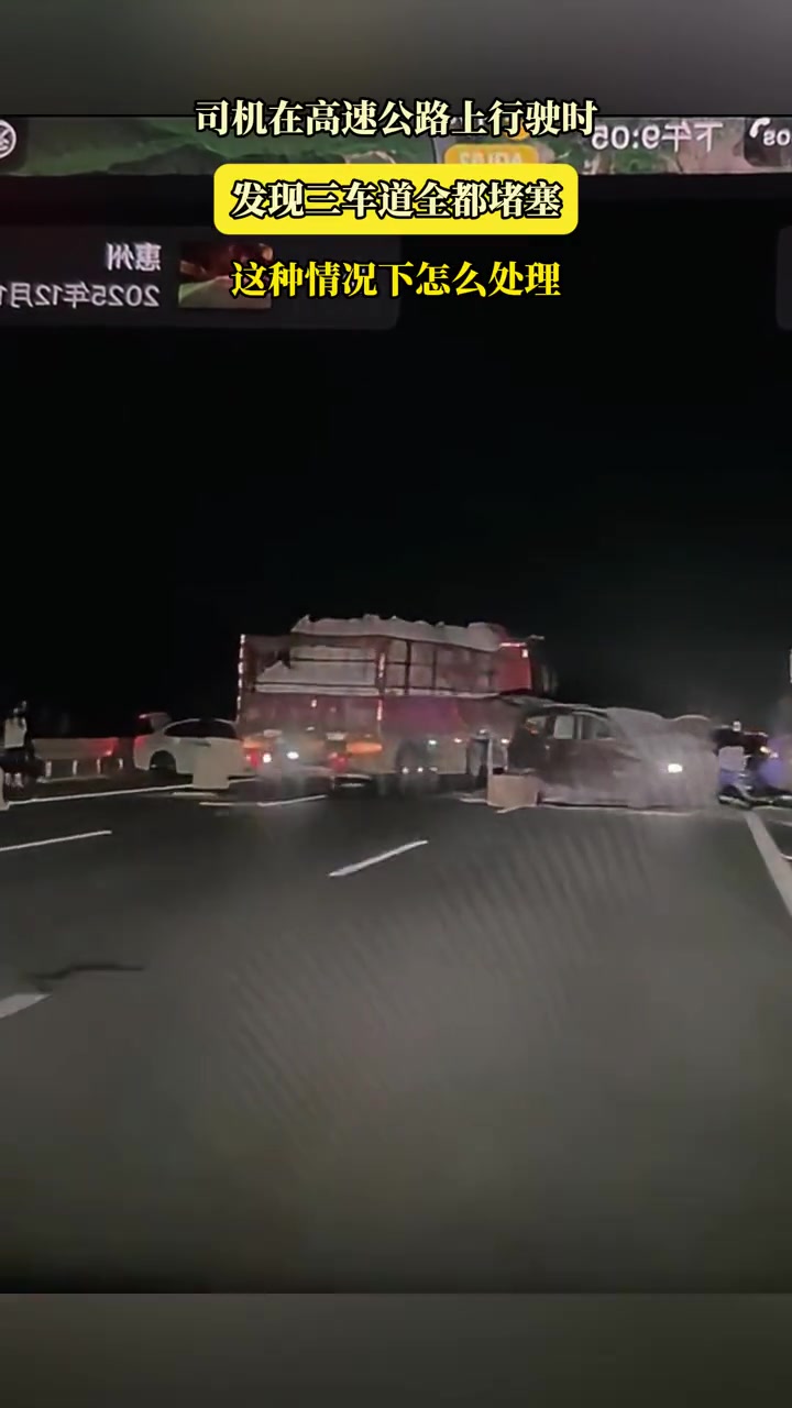 司机在高速公路上行驶时,发现三车道全都堵塞!!