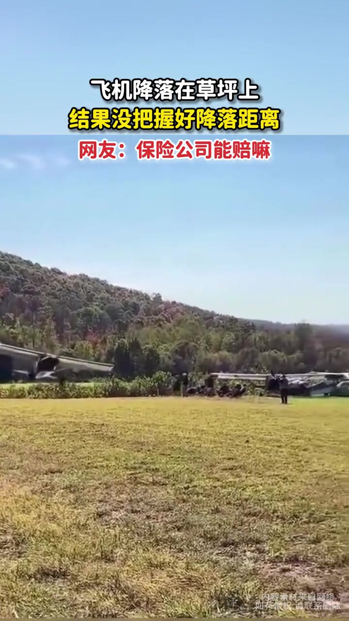 飞机降落在草坪上,结果没把握好降落距离。。。