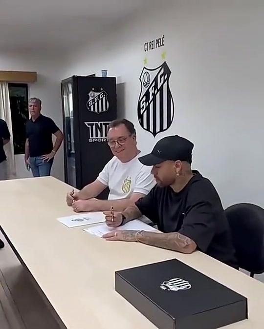>内马尔签合同时签字笔出现问题,现场一片爆笑😅