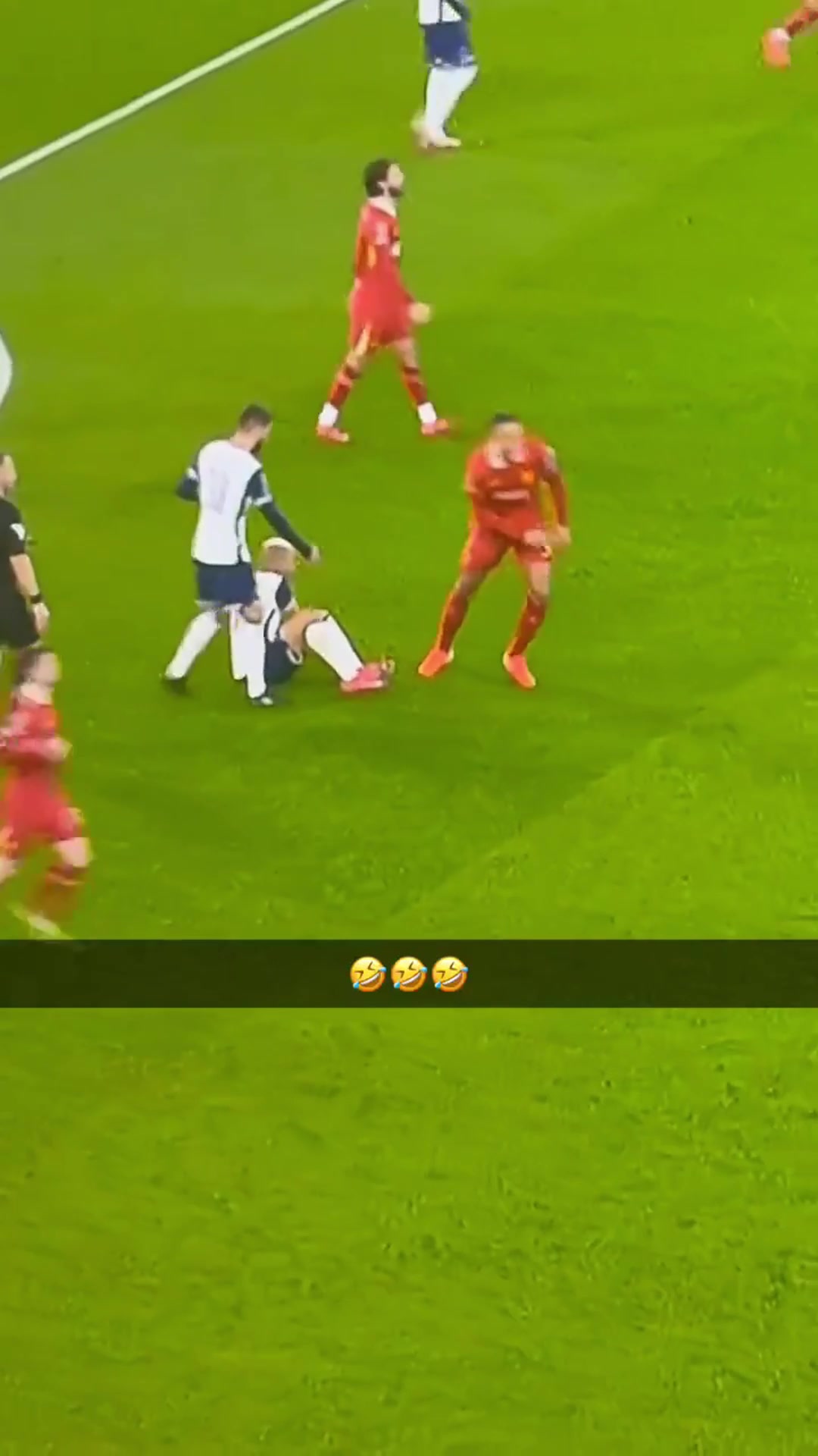 >逗你玩🤣理查利森倒地,范迪克假装要拉他起来结果收手跑了
