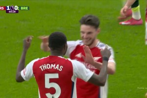 [进球视频] 太快了!赖斯反击奔袭推进送助攻!托马斯小角度打门得手!