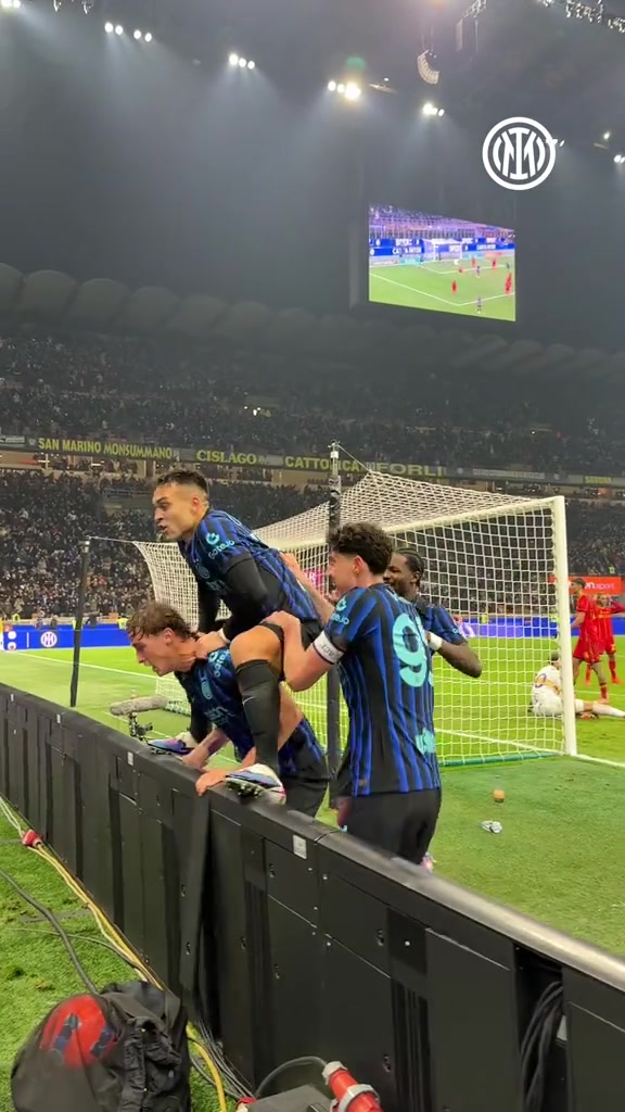 >从小就爱往上爬!实拍:皮奥为国米破僵后,劳塔罗第一个“上墙”