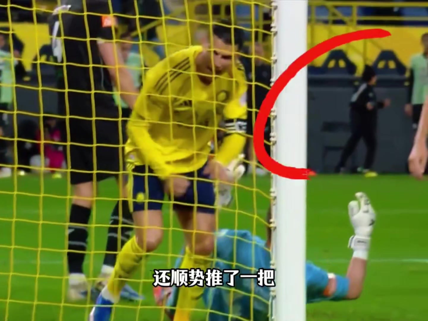 >逃过红牌?利雅得胜利打进第三球后,C罗按压对方门将头部😅
