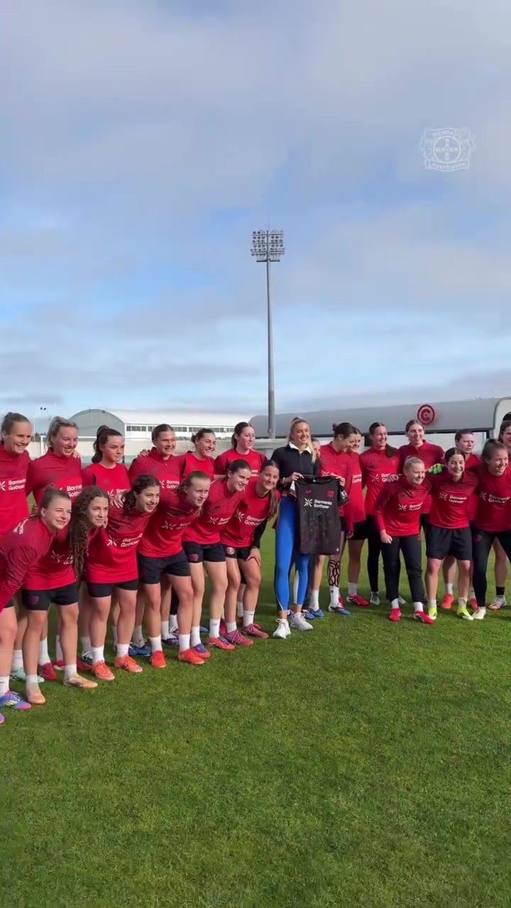 你站C位吧!德国田径美女运动员施密茨与勒沃库森女足交流合影!