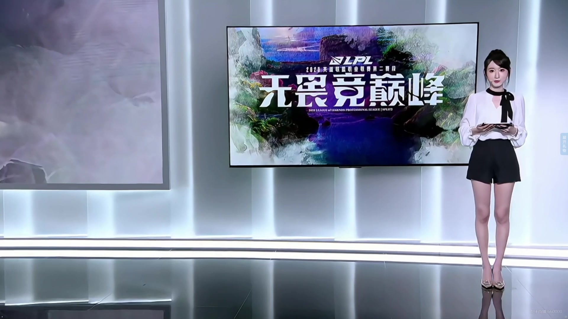 >好好看😍本场互动女主持人童童出场:黑白套装,脖子绑带惹眼