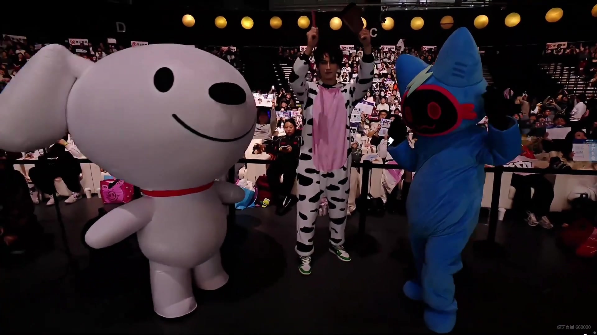 BLG、JDG两队吉祥物与敲钟牛激情互动