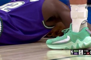 [米德尔顿受伤] 可怕!米德尔顿被布朗肘到趴地上 满嘴飙血!!!
