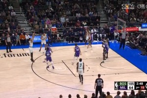 [塔图姆三分] 惨案!塔图姆飙进三分将分差拉到44分 字母哥面无表情