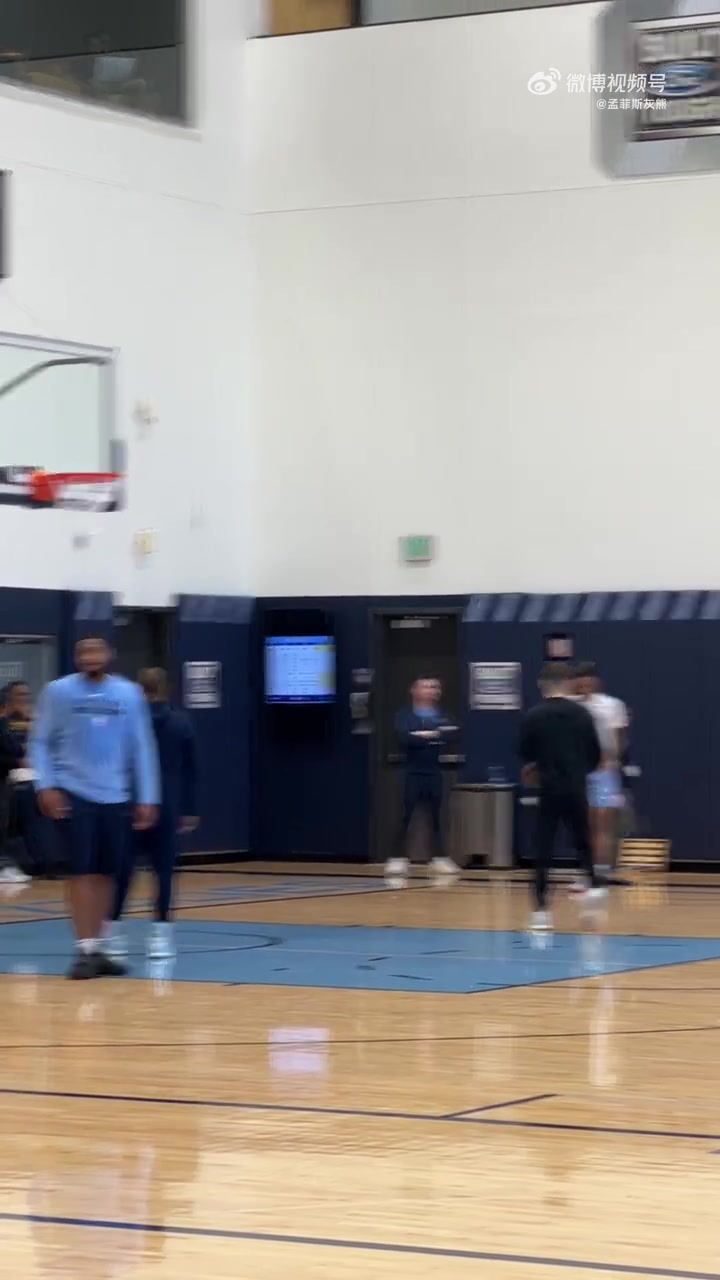 >这样子明天能打湖人?莫兰特右手绑着冰袋,进行左手投篮练习