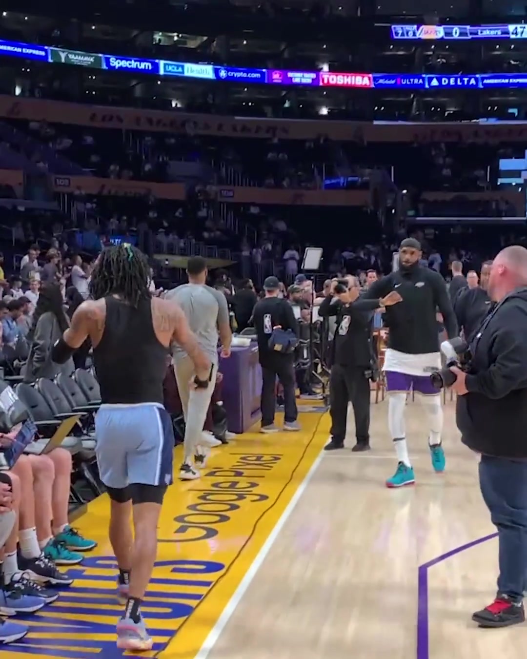 >友好!詹姆斯赛前和莫兰特轻轻碰拳致意🤜🤛