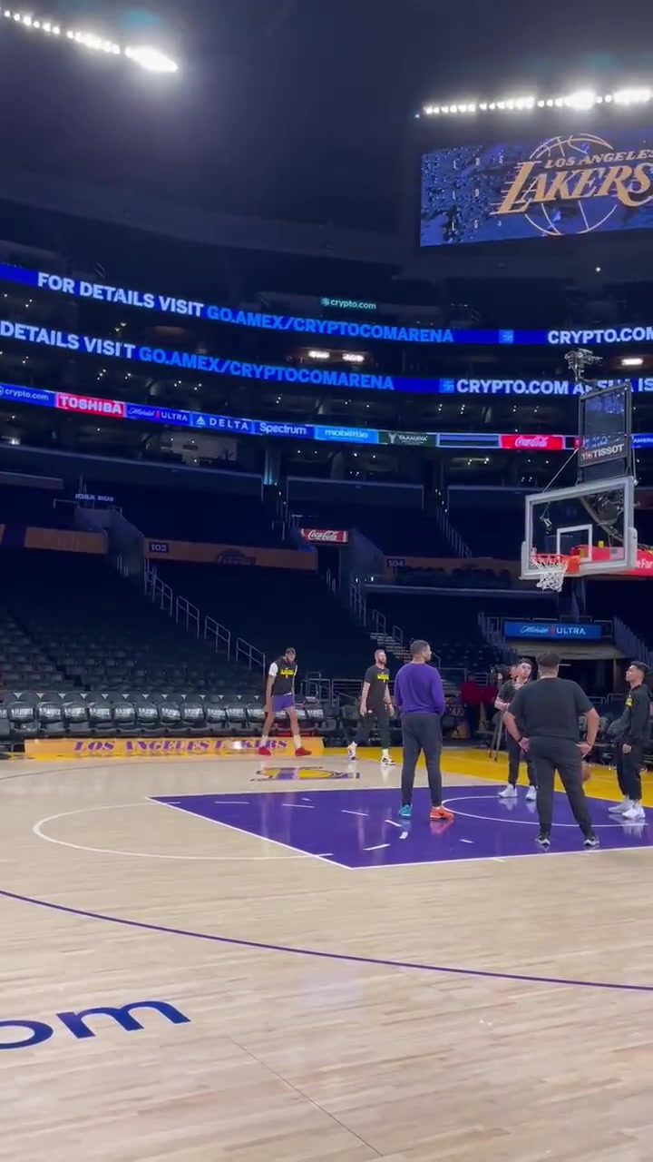 >今天湖人最关键的人物!!浓眉赛前练习三分,7中5!!
