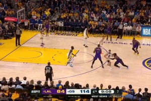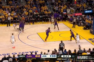 [詹姆斯目送扣篮] 湖人这防守,詹姆斯直接目送!追梦接库里助攻长驱直入轻松暴扣