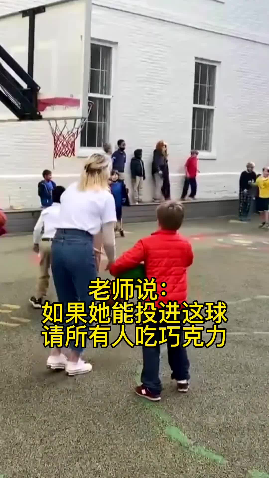 老师说:如果她能投进这球,就请所有人吃巧克力