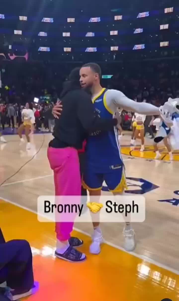 >哈哈!布朗尼赛后和“爸爸”库里拥抱😂