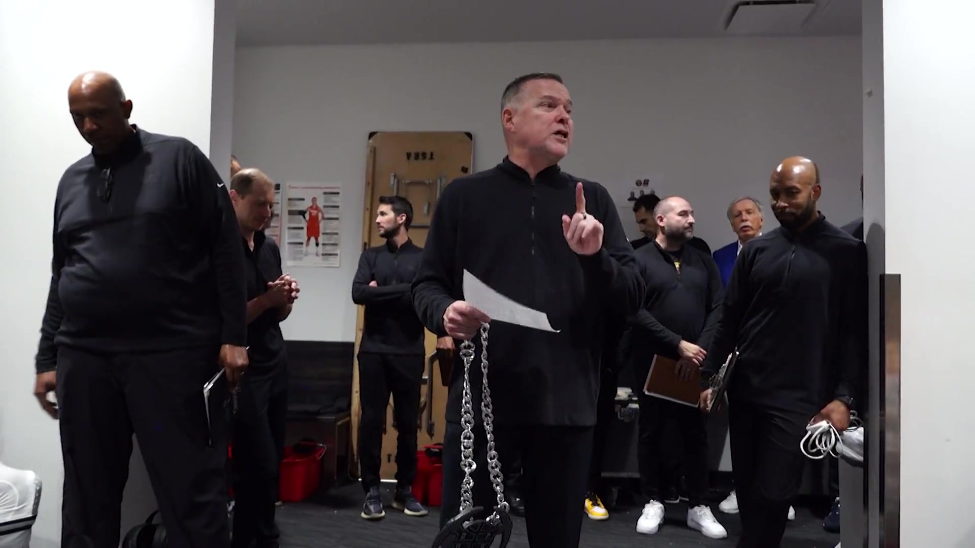 >笑死!🤣掘金拿下太阳后 马龙颁发银链子 掘金球员发出狗叫声