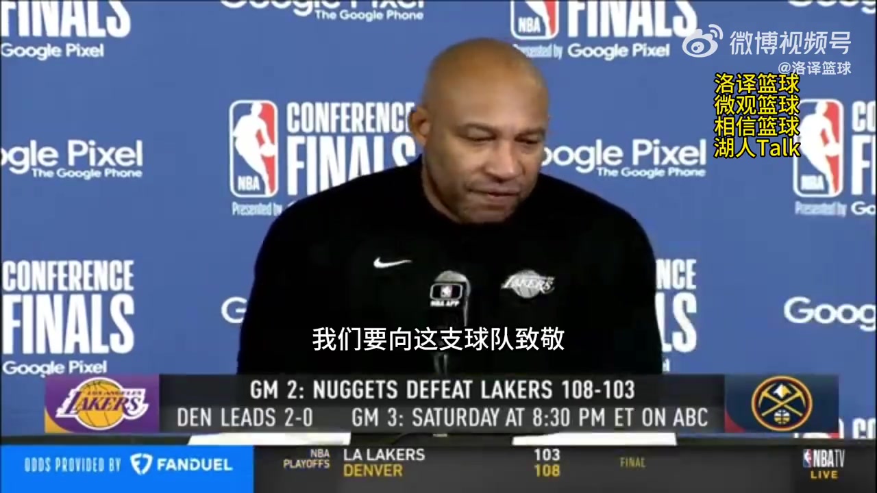 >湖人主帅哈姆:我们今天打得比G1好多了,下一场回主场见!