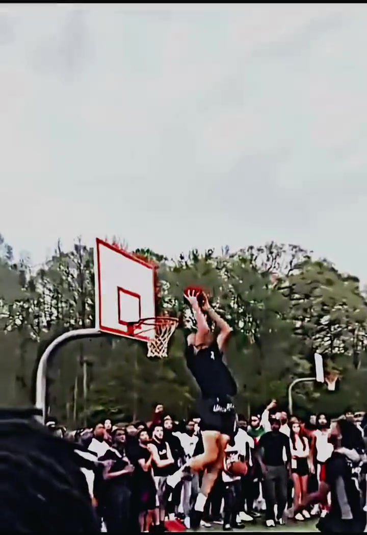 >牛逼!这个扣篮眼睛都到篮筐上面了吧