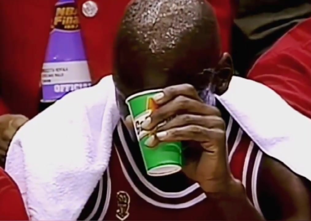 这是哪个对手这么猛啊?能让乔丹这样眼里无神满头大汗