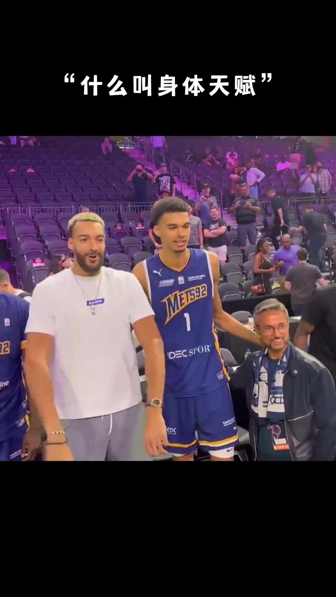 天啦!文班与戈贝尔站一块 还比戈贝尔高半个头