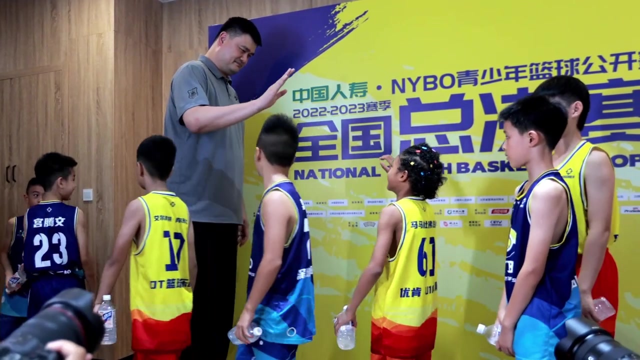>🤪调皮!姚明与小朋友一个一个击掌!中间故意把手掌升高
