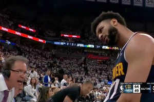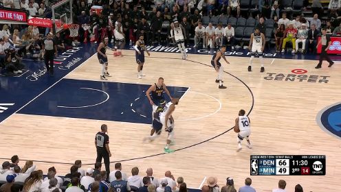 [穆雷半场压哨三分] 恐怖如斯!掘金1.65分,穆雷后场抢断超远三分压哨,掘金半场领先15分!