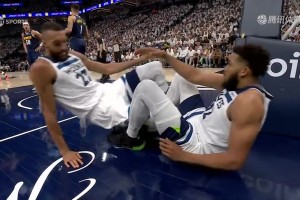 [戈贝尔滑倒] 笑死!唐斯摔倒戈贝尔过来拉他,结果自己滑倒劈叉了!