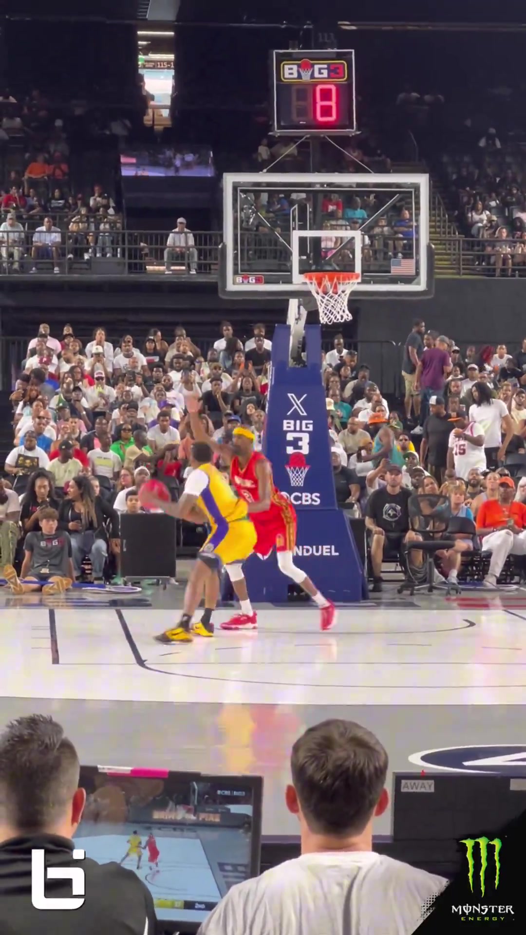 老连长!蒂格在布鲁尔头上得分,随后对其比出“你太小了”