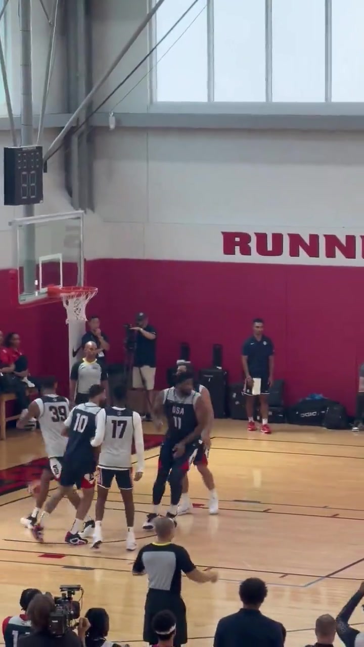 >波德齐姆斯基在练习赛中被恩比德一肘击中脸部,倒地