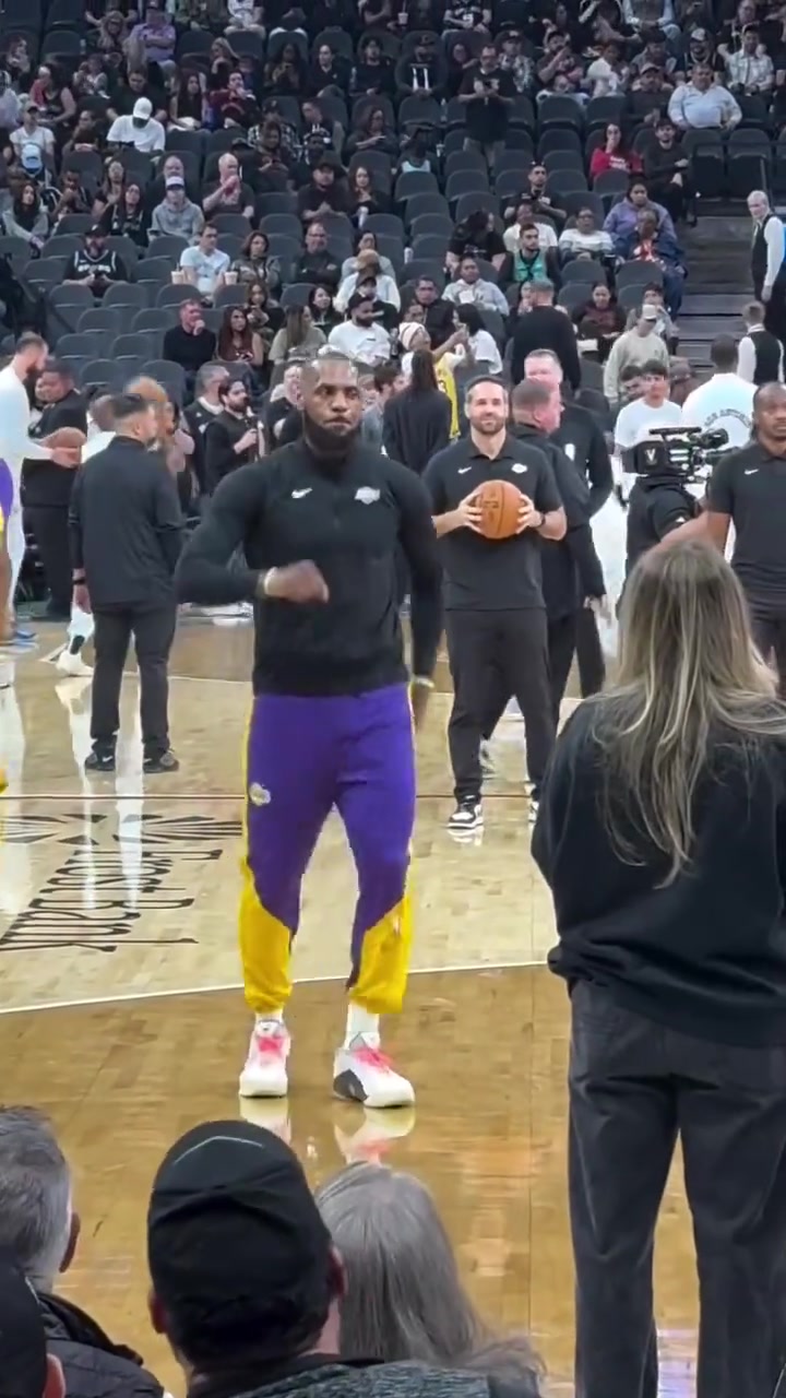 >😅老头节目越来越多了!詹姆斯赛前尬舞