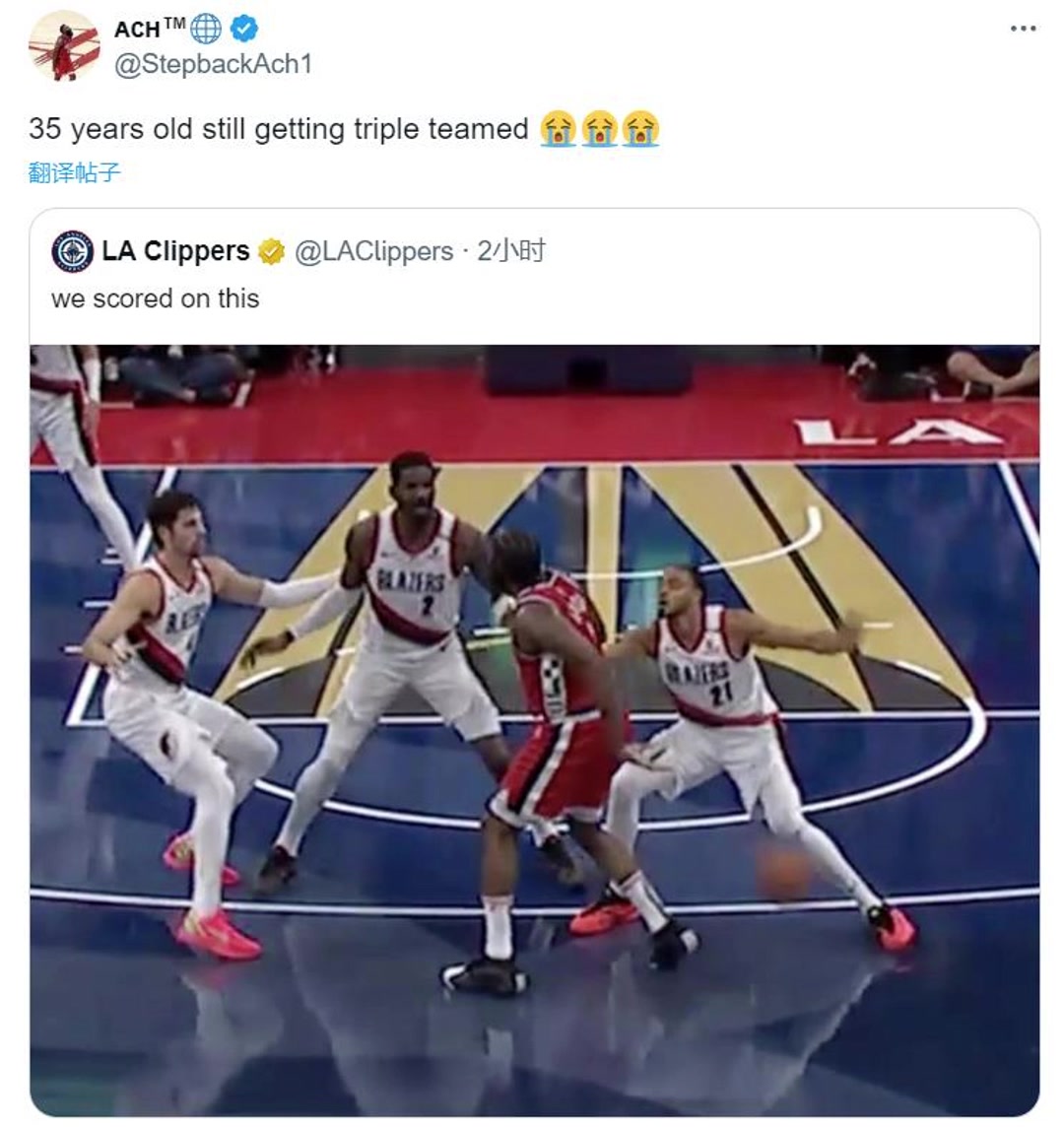 >快船自媒体:35岁的登哥依然要面对三人包夹😳
