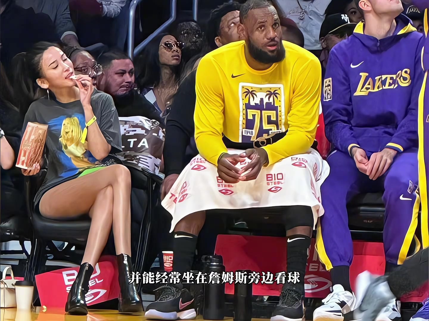 >NBA最强美腿球迷,能经常坐在詹姆斯旁边看球竟因为这个老头