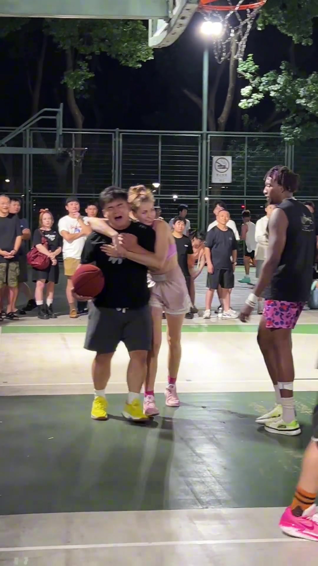 >有这一招通杀阿~长腿女郎防守不小心打到男子脸 贴身拥抱致歉